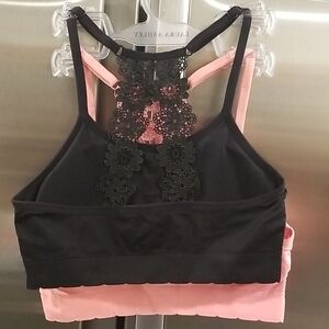 💕LAURA ASHLEY💕 Lace Back Bralettes (2 Pack) Pink & Black Small S NWT