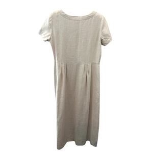 LAURA ASHLEY | Linen V-Neck Short Sleeve Midi Dress Beige Y2K | Size 6