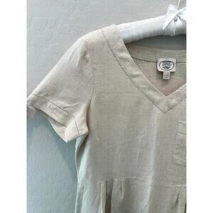 LAURA ASHLEY | Linen V-Neck Short Sleeve Midi Dress Beige Y2K!