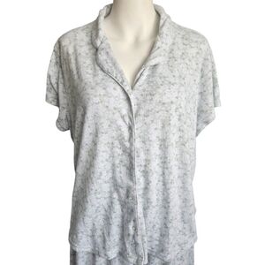 LAURA ASHLEY Pajama Set Green/White Flowers Long Pants Short Sleeve Medium