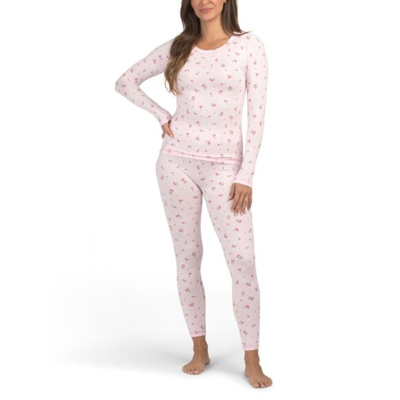 LAURA ASHLEY Pink 2pc Cherries And Hearts Top And Pants Pajama Set
