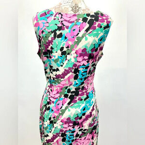 LAURA ASHLEY Pink, Aqua and black abstract print sleeveless midi dress size 12.