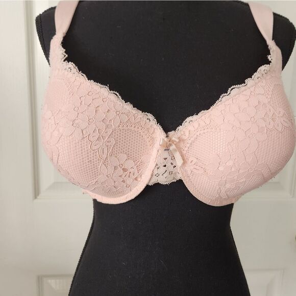 LAURA ASHLEY Pink Lace Bra 40DD Full Coverage Padded Straps Underwire.
