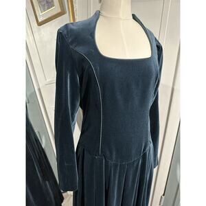 LAURA ASHLEY Vintage Blue Green Velvet Medieval Style Evening Maxi Dress