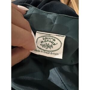 Embrace the charm of a bygone era with this vintage Laura Ashley long midi dress. The dress features a green color with solid pattern, square neckline, long sleeves, and a zipper closure. The fabric type is velvet and material used is a combination of viscose and cotton.