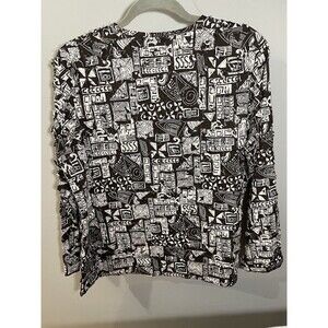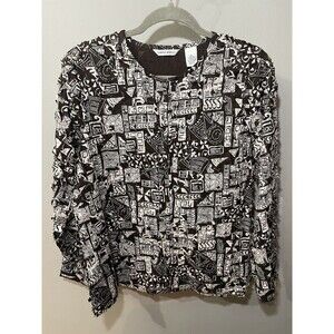 This Laura Ashley blouse is a versatile piece that is perfect for any occasion. With a geometric textured pattern, this blouse features a full zip closure, long sleeves, and a round neckline. The blouse is made from a 100% cotton with a polyester lining, and it is recommended to dry clean only.