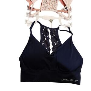 Laura Ashley Intimates pink and blue 3pk long line padded lace back wirefree bras S L XL