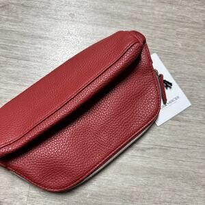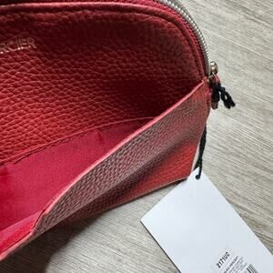 LAURA MERCIER Cosmetic Makeup Bag Leather Red NWT 9x5 Zip Close