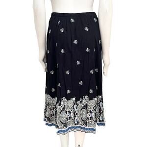 LAURA SCOTT Gauze Cotton Lightweight Floral Pull On Midi Skirt in Black SZ S
