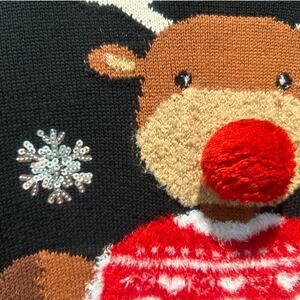 LAURA SCOTT UGLY CHRISTMAS Sweater Cotton Pom Nose Rudolph Sequin Snowflakes L
