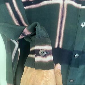 LAURA SIEGEL Moss Grid Silk Button Down Shirt Dress size Small