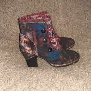 LAURA VITA-Amelia-Multicolor Velvet/Leather-Steampunk/Victorian Booties-Sz 37-NM