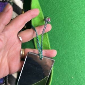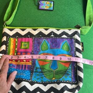 Laurel, Birch green beaded adjustable canvas strap, cat design, zip top like new condition, mirror on one side cat on the other beaded tag on purse, one snap outside pocket one zip inside really cute purse. Good condition check all pics, comment with any questions.