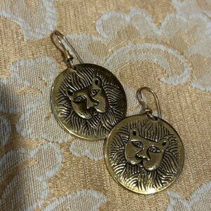 LAUREL BURCH Gold Lion Cat Etched Circle Disc EARRINGS
