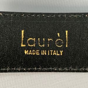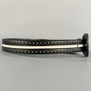 LAUREL belt in a black and white leather featuring a perforated style with white stripe, and buckle closure. Note: this belt has been professionally altered, please double check measurements. Made in Italy.