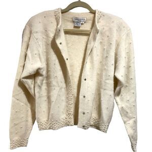 LAUREN ALEXANDRA Vintage Angora & Lambswool Pearl Embellished Cardigan Size L