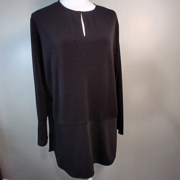 LAUREN BY RALPH LAUREN BLACK TUNIC, KEYHOLE NECKLINE, LONG SLEEVE, SIZE XL