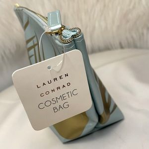 LAUREN CONRAD Aloha Cosmetic Bag Blue & Gold