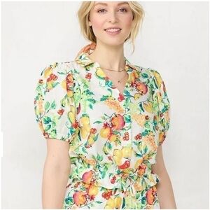 LAUREN CONRAD Cropped Fruit Top with drawstring
