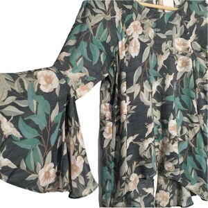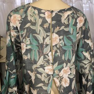 LAUREN CONRAD FLUTTER SLEEVE SPLIT BACK HI LOW BLOUSE TOP SMALL FLORAL FAIRY