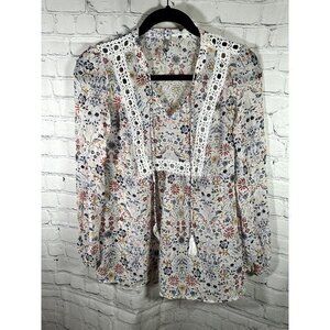 LAUREN CONRAD LADIES LONG SLEEVE FLORAL SHEER BLOUSE (XS) EUC C-170