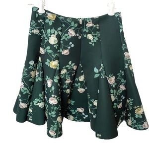 LAUREN CONRAD RUNWAY Mini Skirt Size 6 Green Floral Flare Style