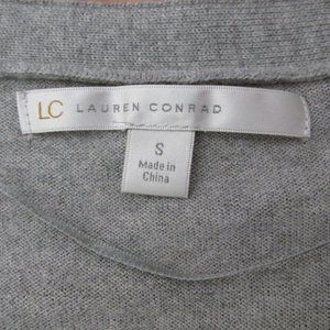 LAUREN CONRAD WOMEN'S SIZE S SWEATER GRAY V- NECK CARDIGAN BOW 3/4 SLEEVE SOCK HOP COSTUME. Fabric: 60% Cotton. 40% Rayon. Light weight. Fabric and sweater knit bow on left front. 5 gray shank button closures down the front. Would be a cute sweater for a 1950's sock hop costume too. The pictures show the exact item you are purchasing. ** Color may be slightly off due to monitor color setting/flash of camera **.