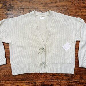 Style: Cropped, ribbed-knit cardigan with a V-neck.