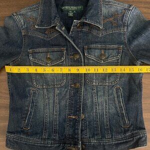 LAUREN JEANS CO by RALPH LAUREN Dark Blue Embroidered Denim Jacket Size P/P
