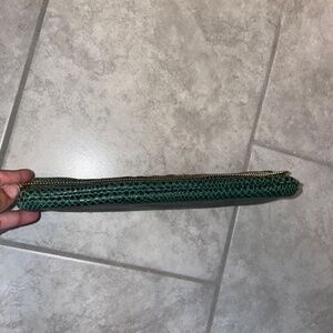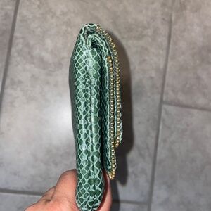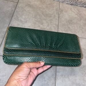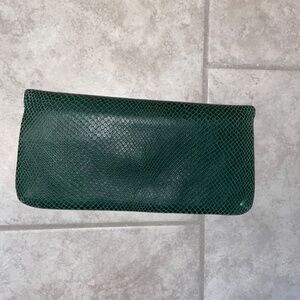 LAUREN MERKIN Green Leather Snakeskin Embossed Clutch