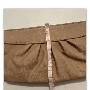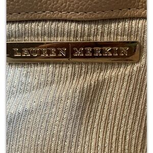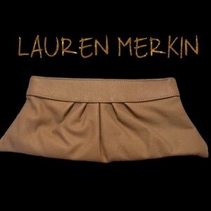 LAUREN MERKIN Tan Leather Designer CLUTCH Logo Inside