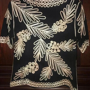 THIS TOP IS PREOWNED AND DOES SHOW SIGNS OF WEAR-SPECIFICALLY A COUPLE LIGHT PICS IN THE EMBROIDERY DESIGN