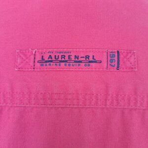 LAUREN Pink Button Down Camp Shirt Large Cotton Roll Tab Sleeve Pockets