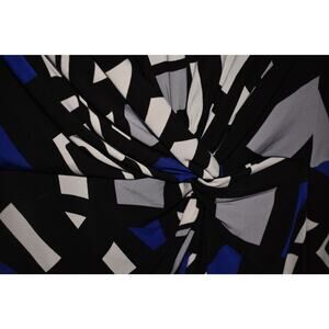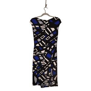 Make a bold statement with this Lauren Ralph Lauren geometric print sheath dress. Featuring a striking combination of black, blue, and white in an eye-catching geometric pattern, this dress is perfect for both professional settings and social gatherings. The knotted front detail adds a flattering touch, cinching at the waist to enhance your silhouette. Crafted from a comfortable and stretchy fabric, this sheath dress offers a sleek and tailored fit that moves with you. Pair it with your favorite heels for a polished look that exudes confidence and style.