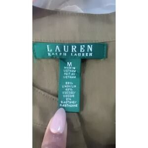 LAUREN RALPH LAUREN BOTTLE GREEN DRESS LINEN VISCOSE BLEND SLEEVELESS SIZE L