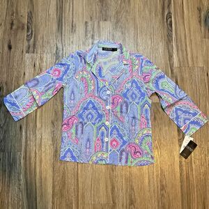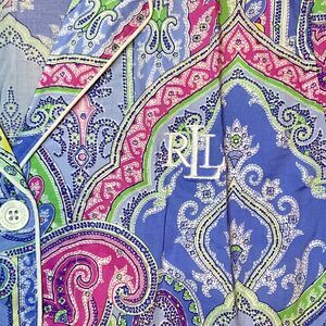 LAUREN RALPH LAUREN Black Label 2 Piece PJ Set Paisley Size PS Petite Small NEW