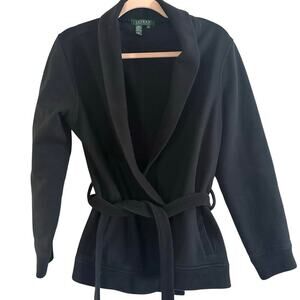 LAUREN RALPH LAUREN Black Tie-Front Soft Cowl Neck Fleece Blazer Jacket - Sz M