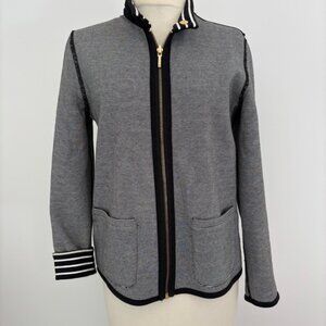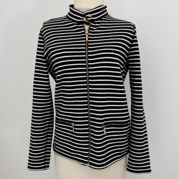 LAUREN RALPH LAUREN Black & White Reversible Striped Jacket Zip Front