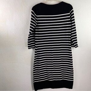LAUREN RALPH LAUREN Black & White Stripe Knit Dress w/laced shoulders. Medium