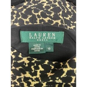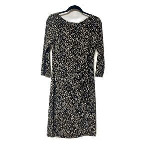 LAUREN RALPH LAUREN Black/Tan Leopard Print Ruched Waist Sheath Dress, Sz 10