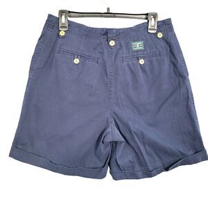 LAUREN RALPH LAUREN Blue Gold Button High Rise Cuffed Twill Chino Shorts SIZE 10