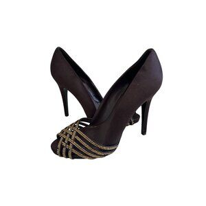 LAUREN RALPH LAUREN Brown Satin Jeweled Heels Size 6