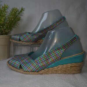 LAUREN RALPH LAUREN CAMARA PLAID ESPADRILLE HEEL WOMENS SIZE 9.5 EUC