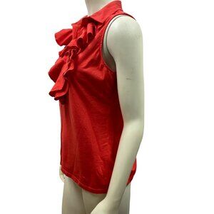 LAUREN RALPH LAUREN COLLARED RUFFLE FRONT TOP LG