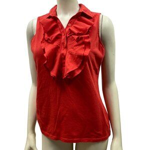 LAUREN RALPH LAUREN COLLARED RUFFLE FRONT TOP LG