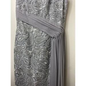 LAUREN RALPH LAUREN DRESS GOWN 4 GRAY LACE FLORAL EMBROIDERED MAXI LONG PAISLEY