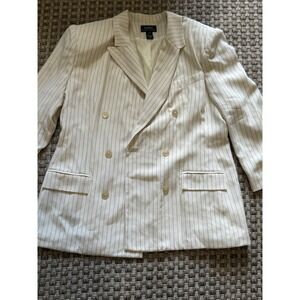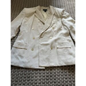 LAUREN RALPH LAUREN Double Breasted Blazer 100% Silk Pinstripe Women SZ 16