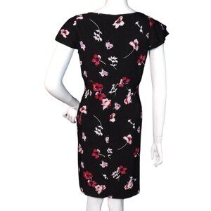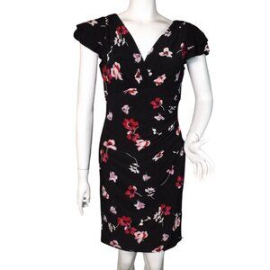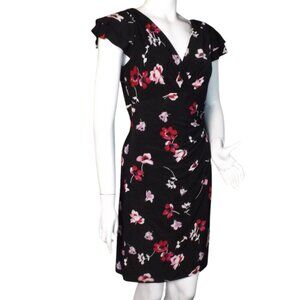 LAUREN RALPH LAUREN Dress, 8/M, Black/Red floral, Layered Flutter sleeve, V-neck