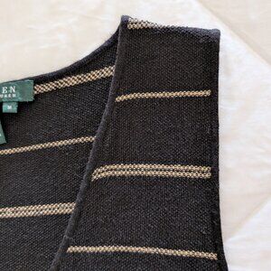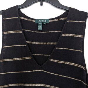 LAUREN RALPH LAUREN Dress M Black Tan Striped Linen Blend Classic Pullover