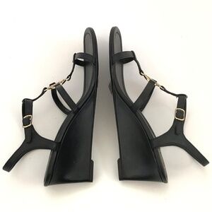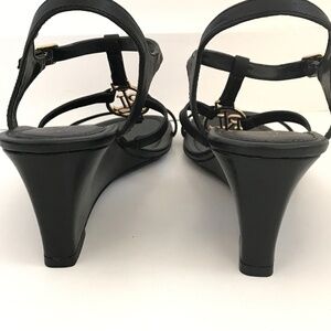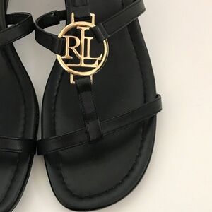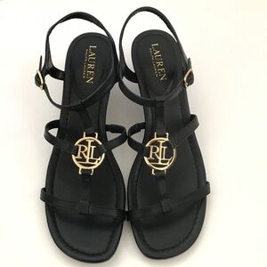 LAUREN RALPH LAUREN Elina Leather Heeled Wedge Sandals Black Women’s Size 9.5